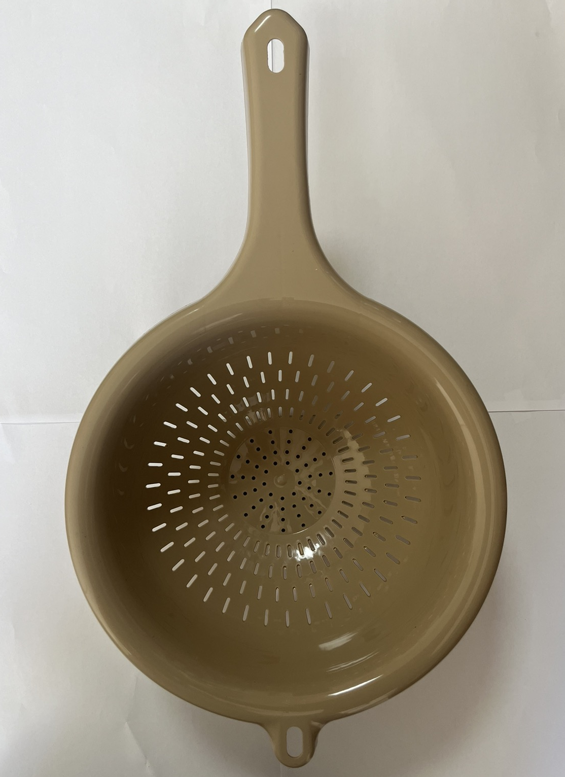 Пластиковий друшляк незамінний на кухні для відціджування макаронних виробів, промивання круп і овочів, А також, незамінний, в приготуванні домашніх консервацій, на дачній ділянці, для миття ягід і овочів. Виступ на обідку друшляка дозволяє легко встановити його на будь-якій ємності, для відціджування рідини. Округла форма, зручна довга ручка з отвором – все це додає зручності в користуванні та зберіганні.