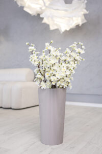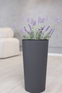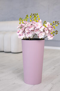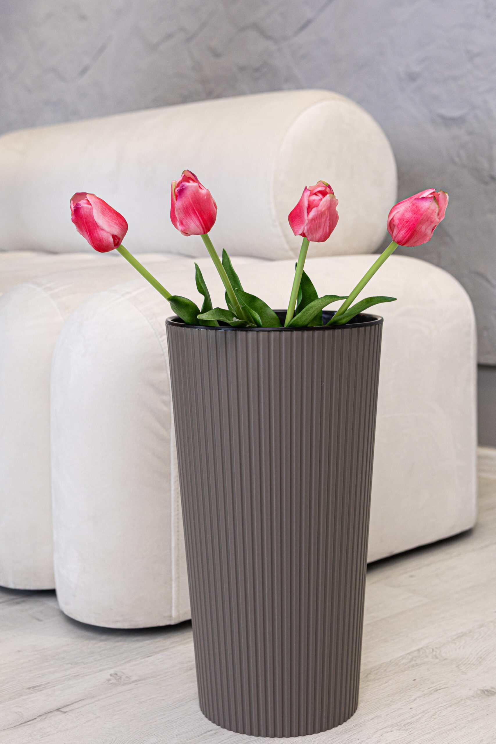 Пластиковий горщик для квітів, виконаний в сучасному стилі, поверхня шагрень. Його елегантний рифленний візерунок додає особливого шарму. Вставка зробить посадку рослини та догляд зручнішим. Горщик добре підходить для інтер’єру або вуличного використання .