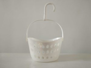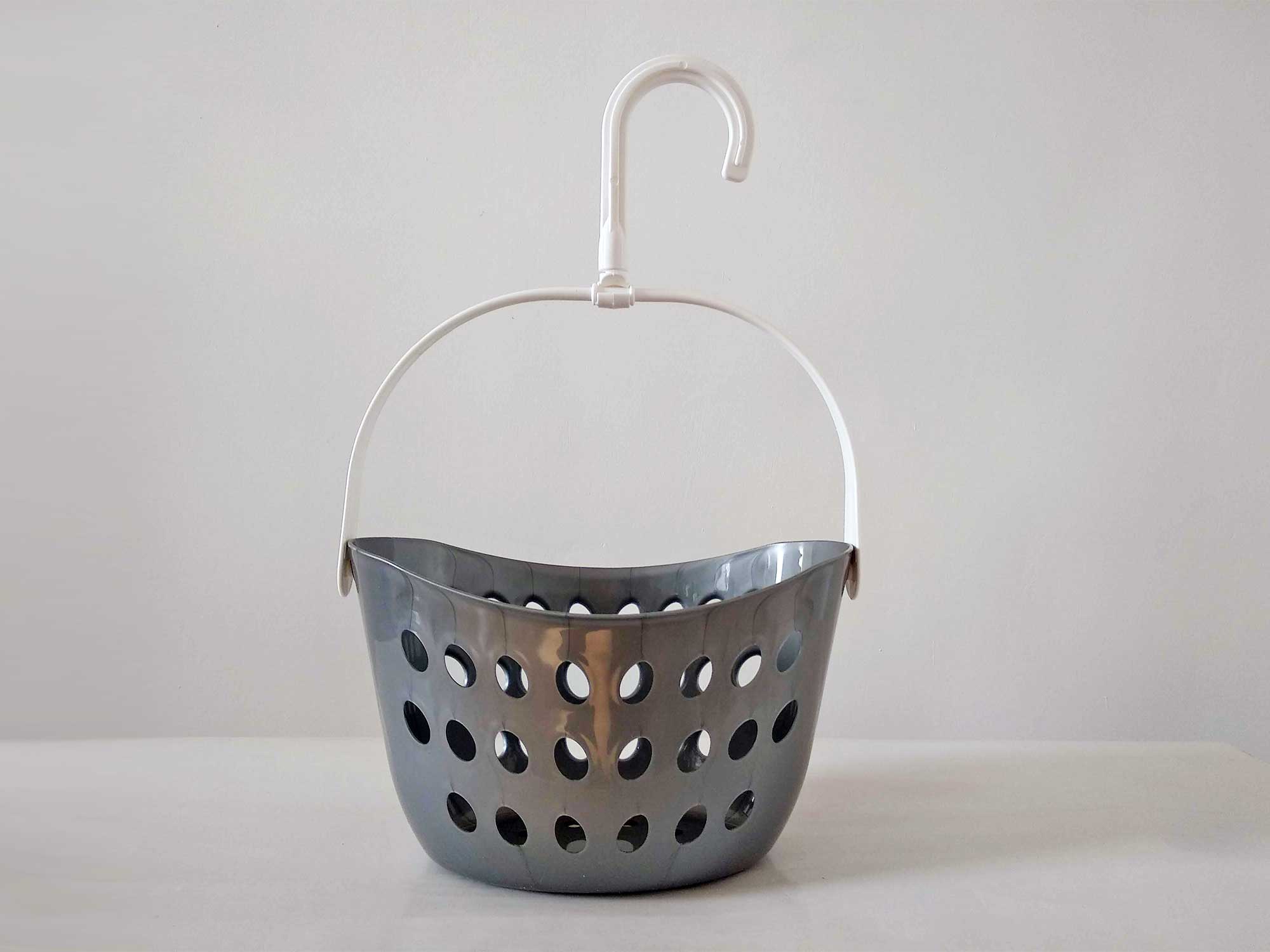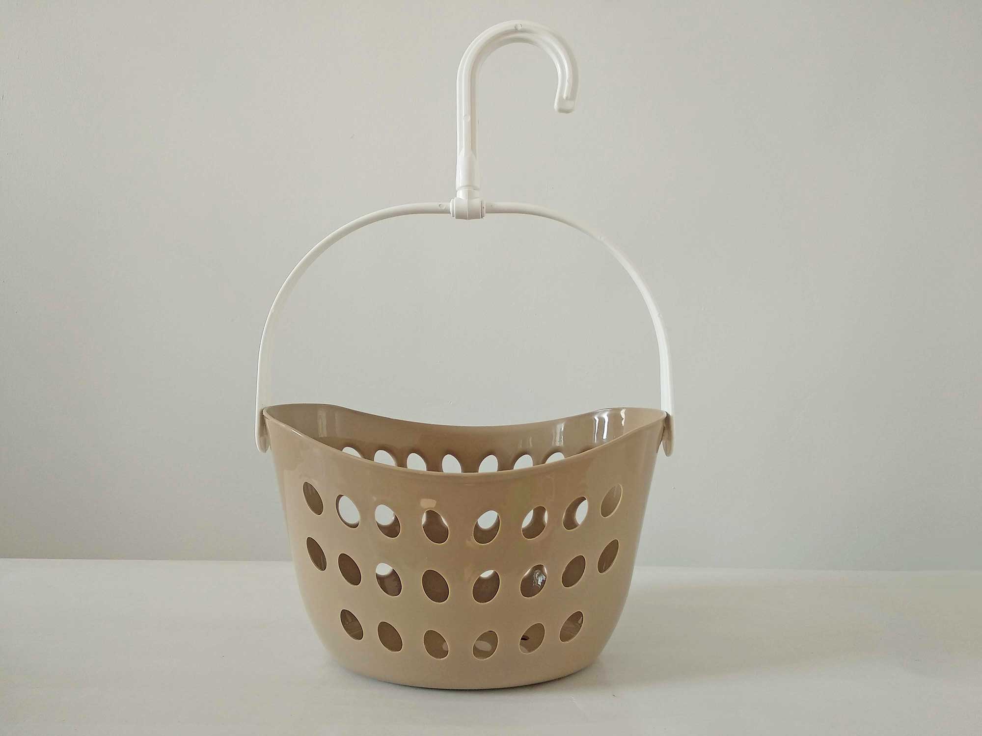Корзина для зберігання прищіпок, овальної форми, виготовлена з високоякісного пластику, має вентиляційні отвори. Дана модель укомплектована ручкрю, яка оснащена спеціальним тримачем з гачком для підвішування виробу на мотузку, що надає їй зручність в експлуатації. Ідеально підійде для зберігання інших речей.