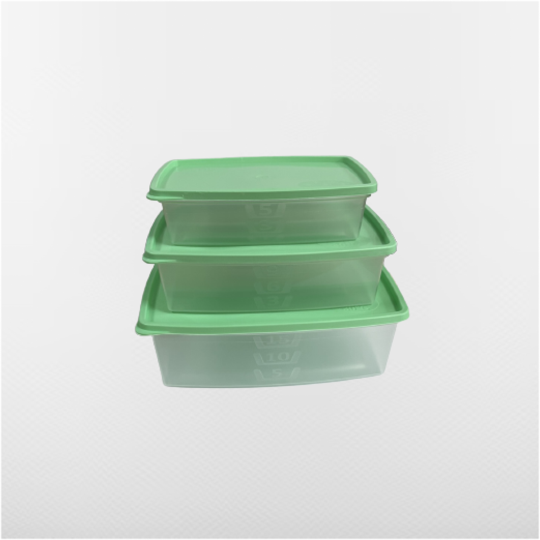 Набір з трьох герметичних контейнерів різного розміру для зберігання продуктів застосовуються для збереження свіжості, аромату, кольору і поживних речовин будь-яких продуктів харчування. Зручний у використанні як для дому так і для подорожей.