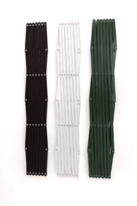 Садова огорожа розсувна, її розміри: складена висота-107см, ширина 17см, діапазон розкладення від : висота-150см, ширина -85см, до висота -200 см, ширина -65см.